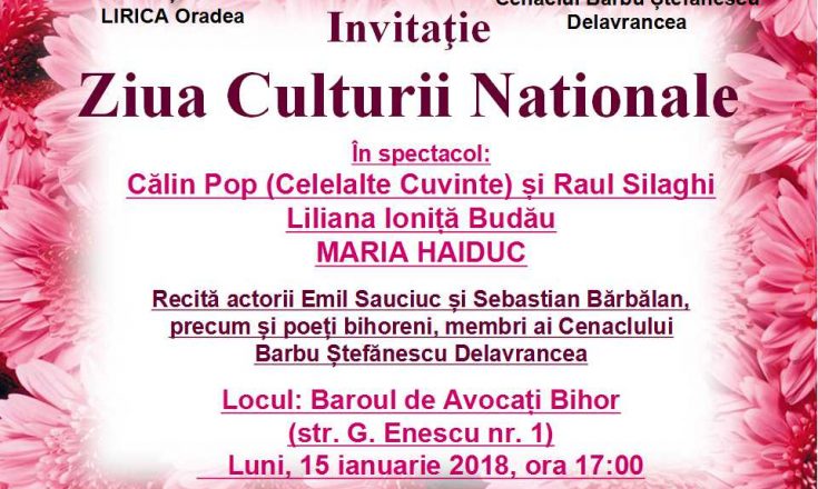 Luni, 15 ianuarie 2018, cu ocazia Zilei Culturii Naţionale și a lui Eminescu, la Muzeul Memorial „Iosif Vulcan”, are loc o conferință de presă, de la ora 10, iar la Baroul de Avocați Oradea, un recital de poezie și muzică. Reprezentanţii Direcţiei Judeţene pentru Cultură Bihor, Inspectoratului Şcolar Judeţean Bihor, Revistei lunare de cultură „Familia”