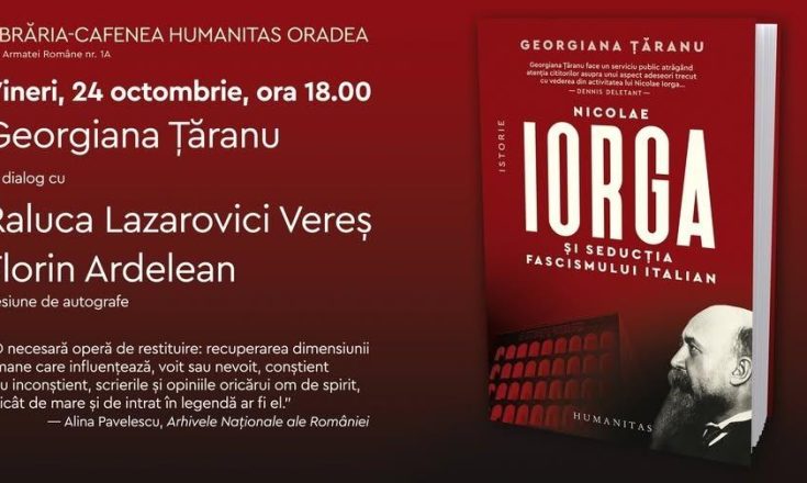 După un amplu periplu în toată țara, vineri, 24 octombrie 2025, de la ora 18.00, se va lansa și la Oradea volumul „Nicolae Iorga și seducția fascismului italian” (Humanitas, 2025), a istoricului Georgiana Țăranu, profesor la Universitatea „Ovidius” din Constanța. Cartea are la bază lucrarea de doctorat a autoarei obținut la Institutul de istorie Nicolae