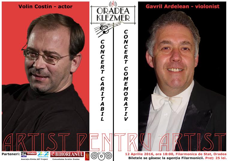 Oradea Klezmer vă invită la un concert cu dublă semnificație – atât caritabil pentru Volin Costin cât și comemorativ pentru Gavril Ardelean, intitulat Artist pentru artist.