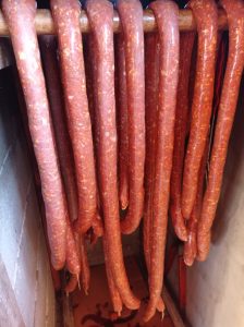 Pentru cârnaț, unii au obiceiul să mai cumpere în plus carne de porc sau vițel, pentru a spori cantitatea sau a schimba puțin gustul cârnațului. Prepararea acestuia constă în măcinarea cărnii selecționate în funcție de preferințe, mai grasă sau mai puțin grasă, dar trebuie obligatoriu să aibă măcar puțină grăsime. Se adaugă condimente de bază precum sare, piper, boia și usturoi, uneori și alte mirodenii după preferințele fiecăruia. Acestea se amestecă foarte bine și cu ajutorul cârnățarului și se bagă în mațele cumpărate sau curățate de la porcul sacrificat. Se poate consuma atât prăjit, cât și afumat. Pentru a-l face afumat, mai întâi se lasă la zvântat o zi sau două, astfel nu devine amar, apoi se poate da fumul timp de vreo 2 zile, depinde și de preferințe. La urmă, se lasă puțin să se uște și este păstrat într-un loc răcoros și uscat.