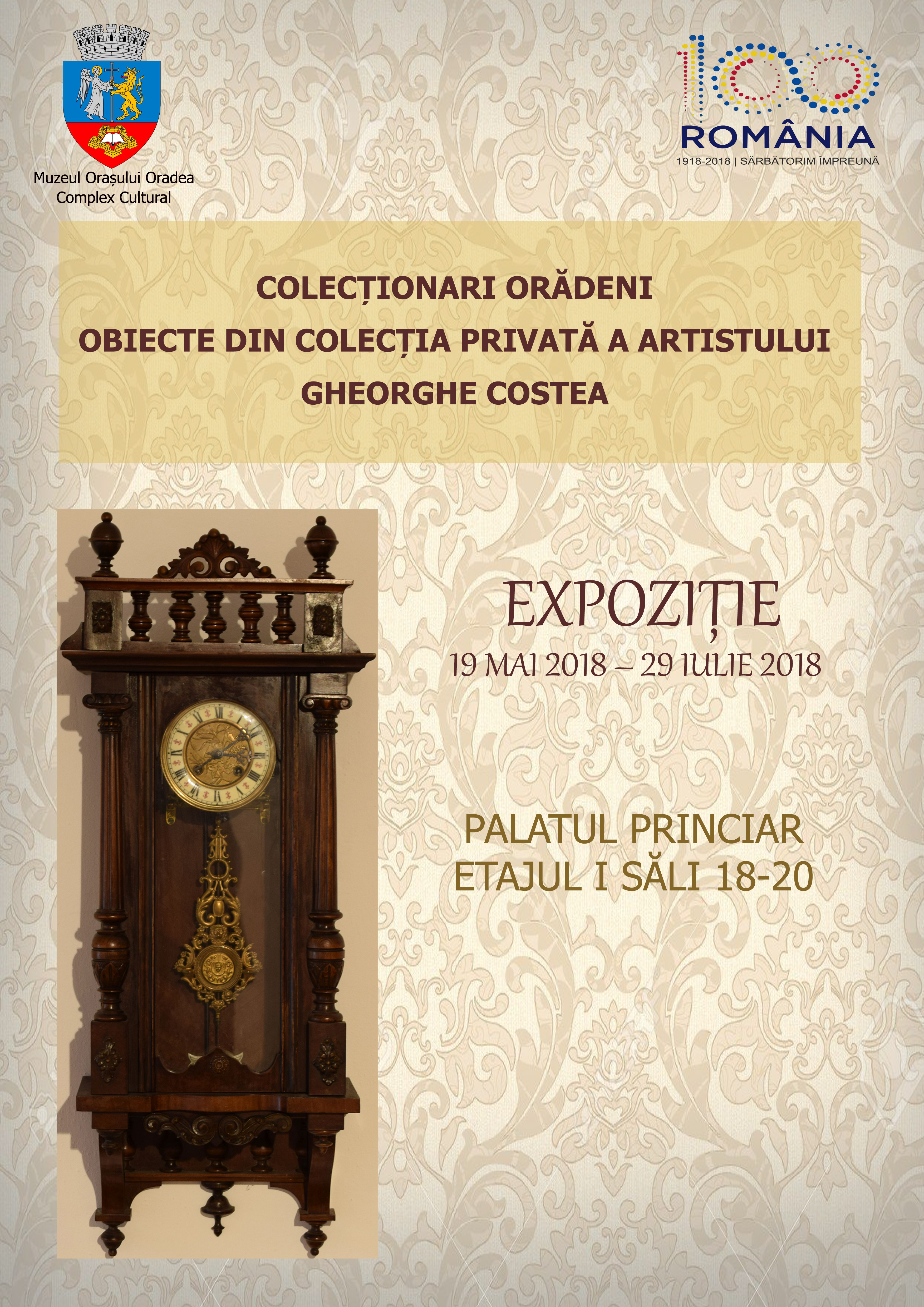 Muzeul Orașului Oradea – Complex Cultural vernisează expoziția „Colecționari orădeni. Obiecte din colecția privată a artistului Gheorghe Costea”. Evenimentul are loc în data de 19 mai 2018, începând cu ora 18, în incinta Cetății, corpul A al Palatului Princiar, etaj I, sălile 18-20.