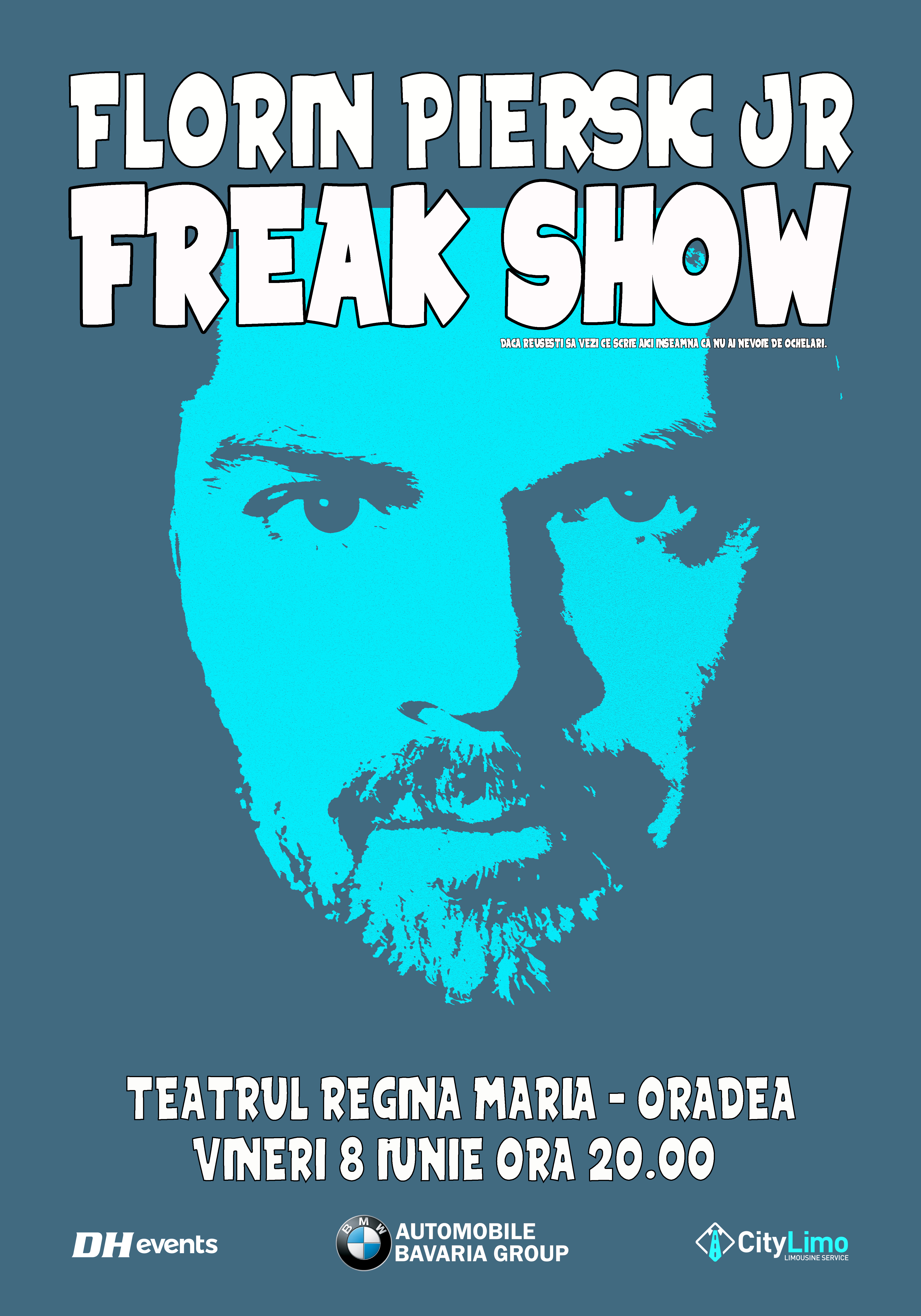 După experiența reușită din 1 aprilie, cu Horațiu Mălăele, îndrăgitul artist Florin Piersic junior revine la Oradea, cu piesa Freak Show (Spectacol cu ciudați).