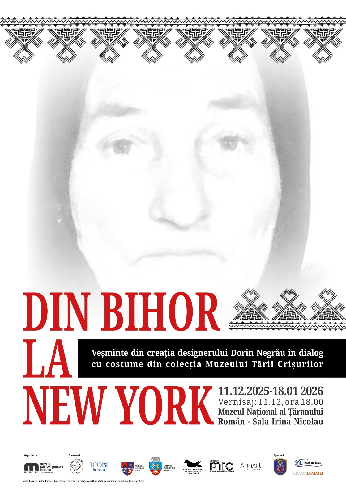 Expoziția Din Bihor la New York. Veșminte din creația designerului Dorin Negrău în dialog cu costumele din colecția Muzeului Țării Crișurilor, prezentată publicului orădean în iulie 2023, a fost itinerată la Muzeul Național al Țăranului Român din București, unde va fi vernisată în 11 decembrie a.c. ora 18.00, în sala de expoziții Irina Nicolau.