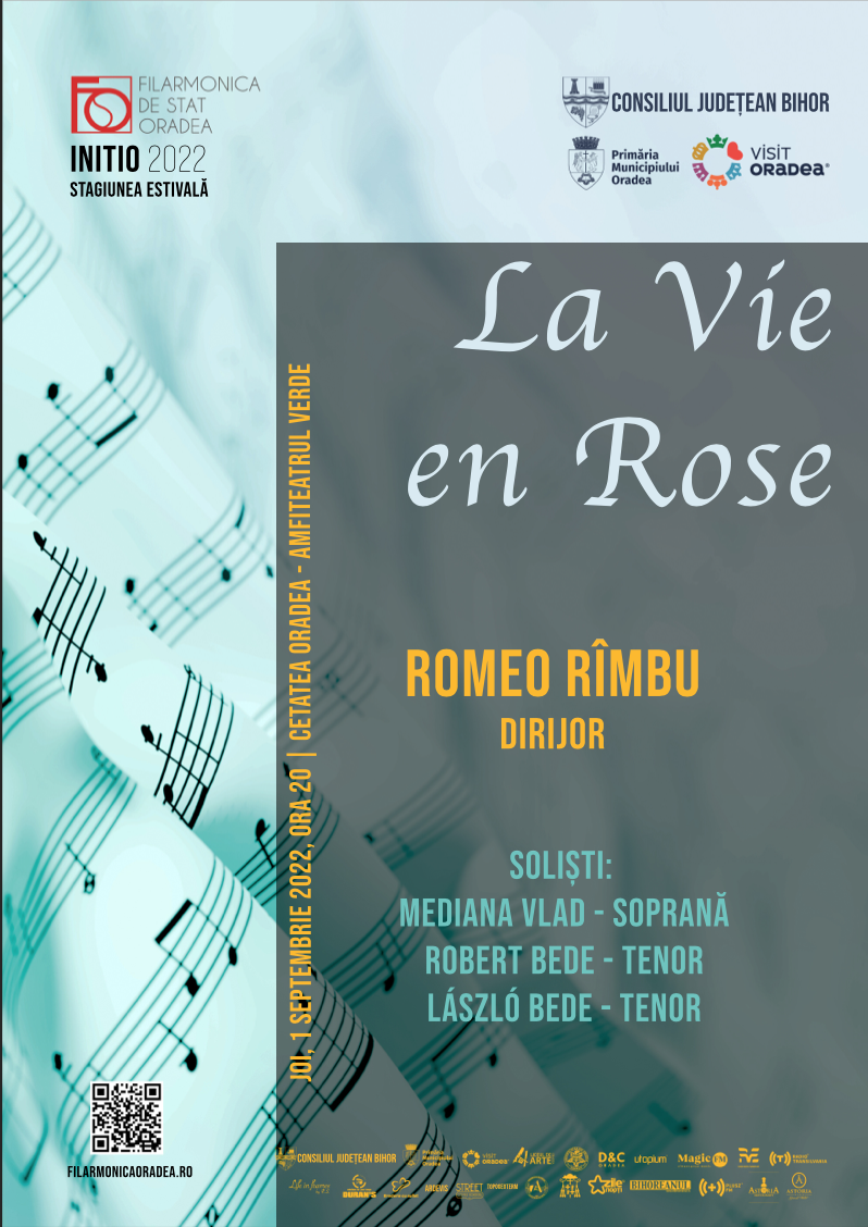 Joi, 1 septembrie 2022, ora 20 , la Cetatea Oradea, La Vie en Rose – concert vocal – simfonic susținut de Filarmonica de Stat Oradea