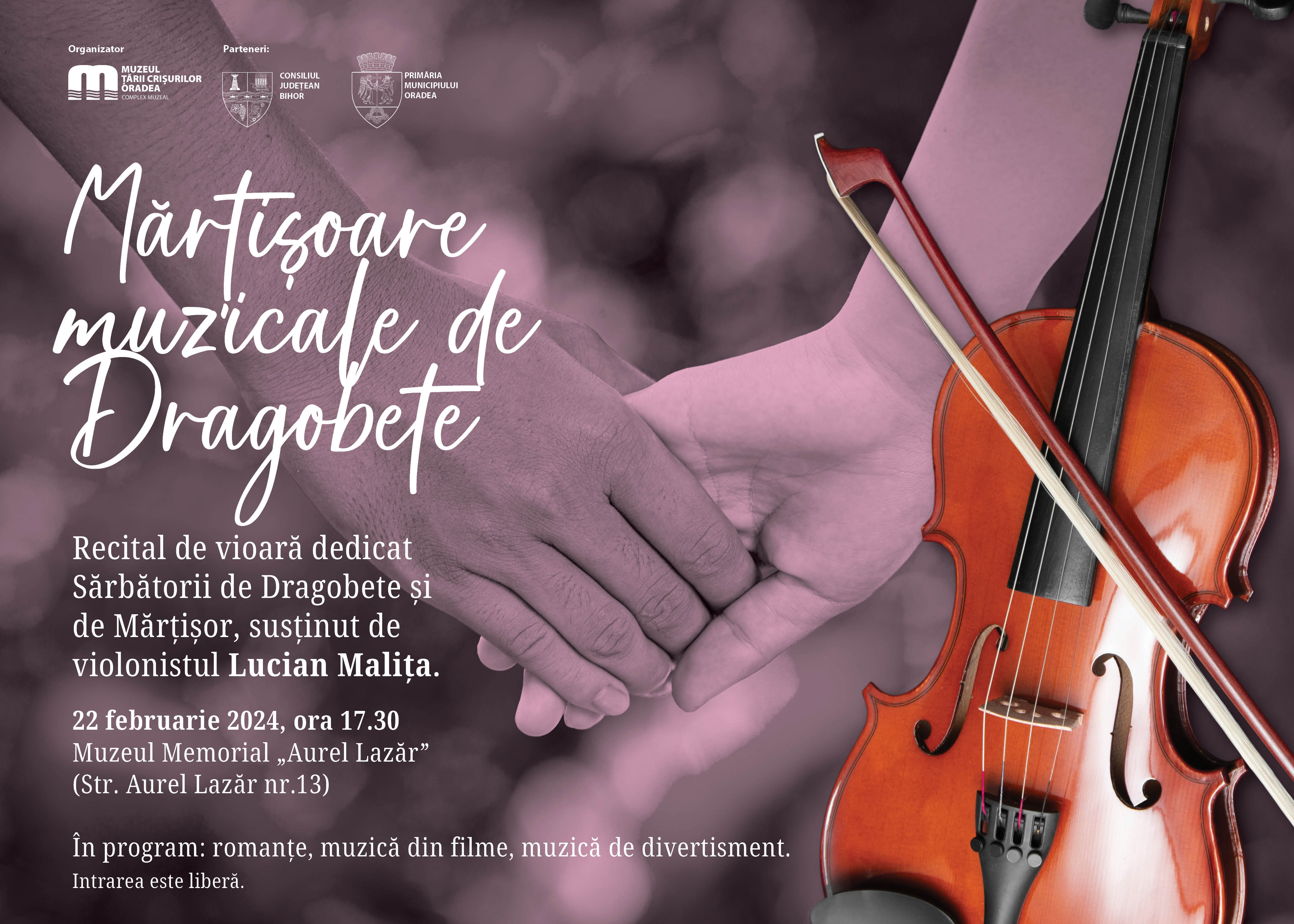 Muzeul Țării Crișurilor Oradea – Complex Muzeal, în parteneriat cu Consiliul Județean Bihor și Primăria Municipiului Oradea, organizează un Recital de vioară dedicat sărbătorii de Dragobete și de Mărțișor, susținut de violonistul Lucian Malița.