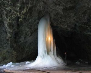 Rezervaţia Gheţarul Focul viu, peştera şi totodată casa unui bloc de gheaţă de aproximativ 25.000 de metri cubi, catalogat ca fiind cel de-al treilea ca mărime din România, în urma celor de la “Scărişoara” şi “Borţig”. Peştera este alcătuită din două sectoare, primul lung de 120 de metri, cel de-al doilea măsurând 68 de metri lungime şi 46 de metri lăţime, adăposteşte şi platforma de gheaţă, deschisă printr-un acoperiş format natural. Denumirea se datorează pătrunderii luminii de la soare, pe timpul zilei, în inima gheţarului, formându-se astfel o imagine care îţi taie răsuflarea.