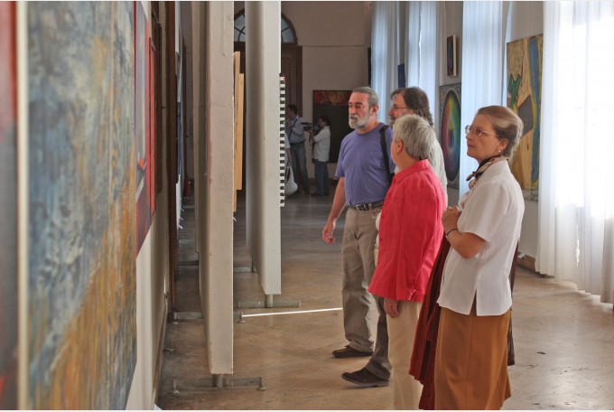 La vernisaj este prezent domnul Janusz Cywicki, directorul Galeriei din Przemyśl, cel care a pus bazele Trienalei, alături de pictoriţa Renata Wotta.
