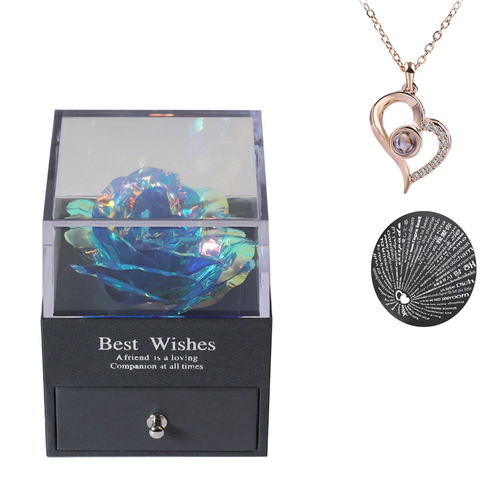 Regalo Rosa Conservata Con Collana E Orsetto - Set Cuore Per Festa Della Mamma, San Valentino, Compleanno