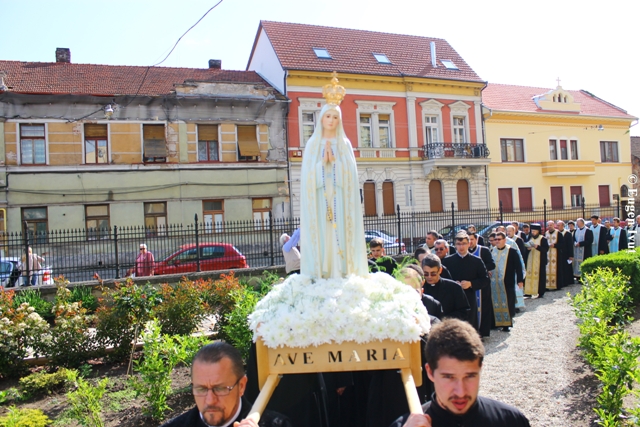 Anul acesta, pe data de 13 mai, se împlinesc 100 de ani de la apariţiile Maicii Domnului de la Fatima. Cu acest prilej, Episcopia Română Unită cu Roma, Greco-Catolică, de Oradea, a organizat un pelerinaj al statuii peregrine în toate protopopiatele Eparhiei, care a început în Catedrala „Sfântul Nicolae” din Oradea. Preoţii protopopiatului Oradea alături