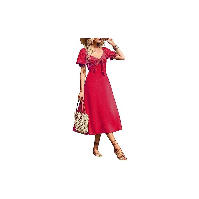 Abito Donna Lungo Con Spacco - Vestito Estivo In Poliestere, Scollo A V, Taglie Forti, Per Occasioni Eleganti O Casual