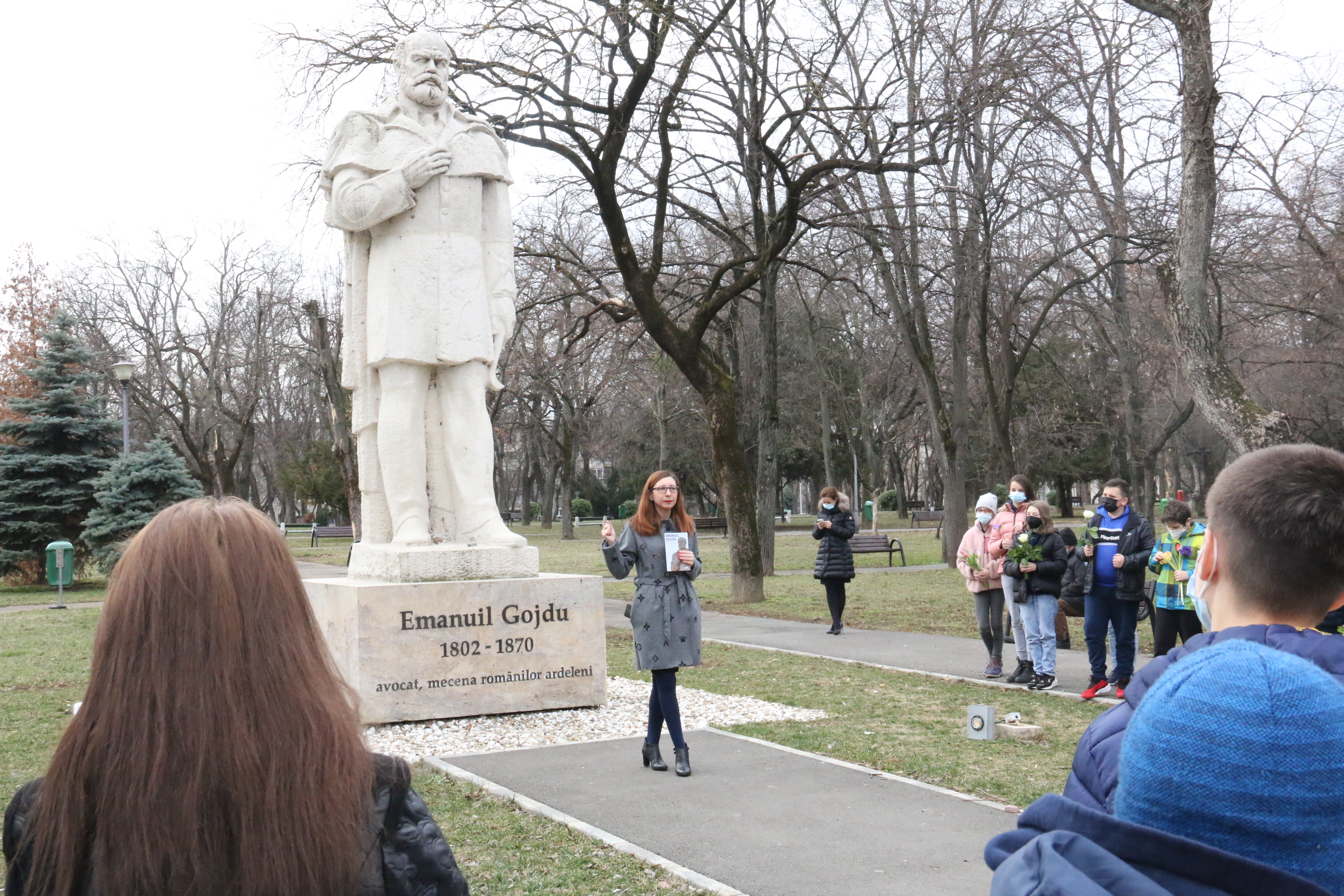„Statuia marelui mecenat român, Emanuil Gojdu, și-a găsit cu greu un loc în urbea de pe Crișul Repede, acolo unde s-a născut pe 9 februarie 1802. Din anul 1978, anul în care s-a luat decizia privind realizarea unei compoziții statuare închinate strălucitului avocat Gojdu, și până în anul 1988, când statuia a fost amplasată în Oradea, în Piața Victoriei, azi Piața Unirii, a trecut un deceniu. Pe 5 octombrie 2019, cu prilejul manifestărilor închinate Centenarului C.N. „Emanuil Gojdu”, opera sculpturală a fost reamplasată în Parcul 1 Decembrie, în vecinătatea instituției școlare de prestigiu, așa cum își doreau profesorii acesteia, încă din anul 1979”, a subliniat Cristina Liana Pușcaș