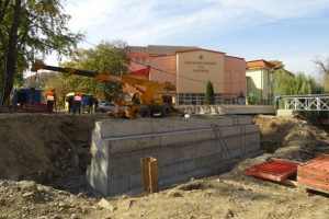 În prezent se execută pregătirea incintei palplanșelor în vederea turnării fundației de beton a culeeii de pe partea dreaptă.