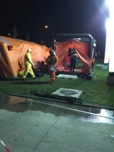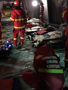 În scopul desfăşurării activităţii în condiţii similare intervenţiei la o astfel de situaţie de urgenţă, la locul producerii celor două evenimente au fost mobilizaţi peste 50 de pompieri militari, care au intervenit cu șapte autospeciale de de primă intervenție și comandă, de stingere, de descarcerare cu punct medical avansat, de transport personal şi victime multiple, de primă cercetare şi evaluare chimică, biologică, radiologică şi nucleară (autospeciala CBRN), precum și cu 11 ambulanţe SMURD.