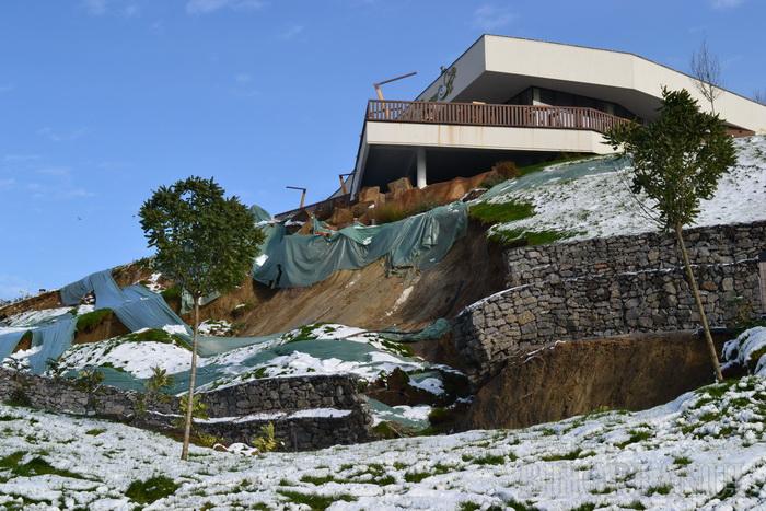 N-a rezistat nici un an! Investiţie de 1,9 milioane euro, finanţată din fonduri europene, grădina publică Ciuperca a fost distrusă de o alunecare de teren. Versantul a venit la vale pe o lungime de 70 de metri în noaptea de sâmbătă spre duminică, după prima ninsoare din acest sezon.