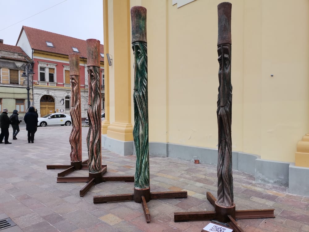 Ieri, lângă Catedrala Greco-Catolică „Sfântul Nicolae”, a fost vernisată expoziția de sculptură a artistului Horea Sabău, intitulată „Stâlpii cerului”.