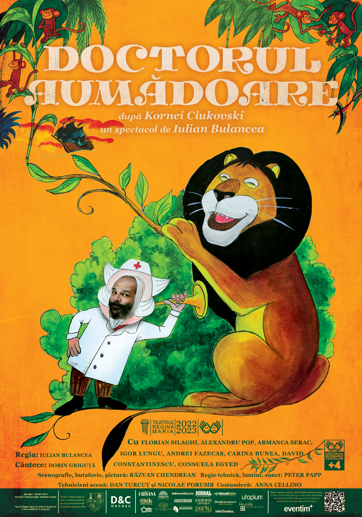 Trupa Arcadia a Teatrului Regina Maria anunță o nouă premieră a stagiunii 2022- 2023: „Doctorul Aumădoare”, adaptare după Kornei Ciukovski, în regia lui Iulian Bulancea, care va avea loc duminică, 5 martie, de la ora 11:00, la Sala Arcadia. Textul pe care se bazează spectacolul Trupei Arcadia este inspirat din celebra carte a lui Kornei Ciukovski, unul dintre cei mai populari poeți ruși care a scris pentru copii. Datorită personajelor sale captivante și rimelor inventive a fost comparat cu autorul american pentru copii Dr. Seuss.