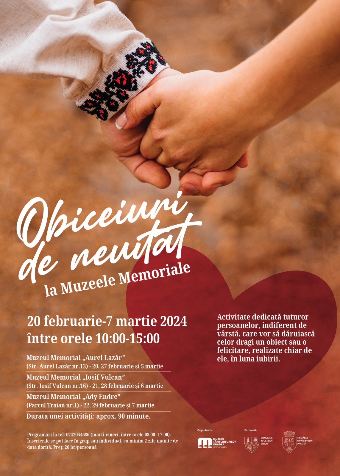 Muzeul Țării Crișurilor Oradea – Complex Muzeal organizează, cu sprijinul Consiliului Județean Bihor și al Primăriei Municipiului Oradea, atelierul „Obiceiuri de neuitat” la Muzeele Memoriale. Acesta va avea loc în perioada 20 februarie-7 martie a.c., între orele 10:00-15:00, astfel: