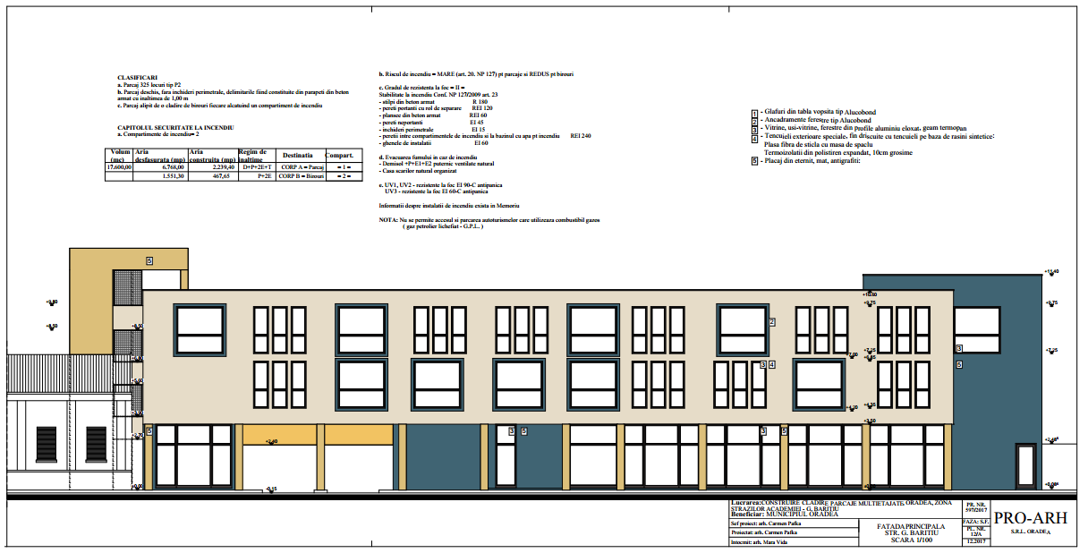 Pentru integrarea clădirii în fondul construit al zonei centrale și în vederea creșterii economice, se propune construirea unui complex multifuncțional constând dintr-o parcare multietajată cu o arie desfășurată de 6.768 mp precum și o clădire de birouri având aria desfășurată de 1.551,30 mp. Aceasta din urmă va avea ca rezultat un front continuu, specific zonei centrale a orașului.
