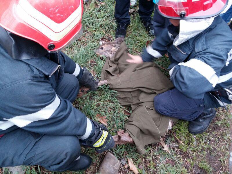 Trei animale (doi pui de căprioară și o vițea) au fost salvate de pompierii militari, la sfârșitul săptămânii trecute.